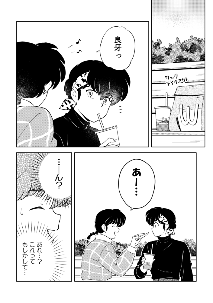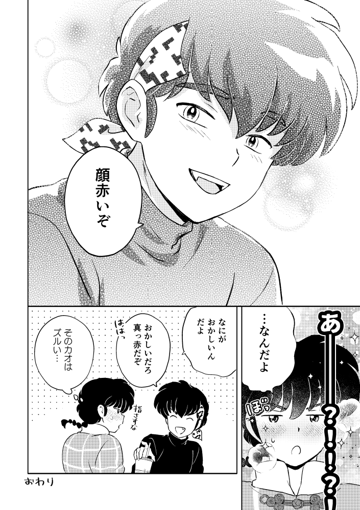元々奇数ページのつもりのコマ割りとタイトル位置だったし、2コマ目の気持ち良くなってる良牙の、自分としてはカオの方を見せたかったけど大して変わりなかったです。