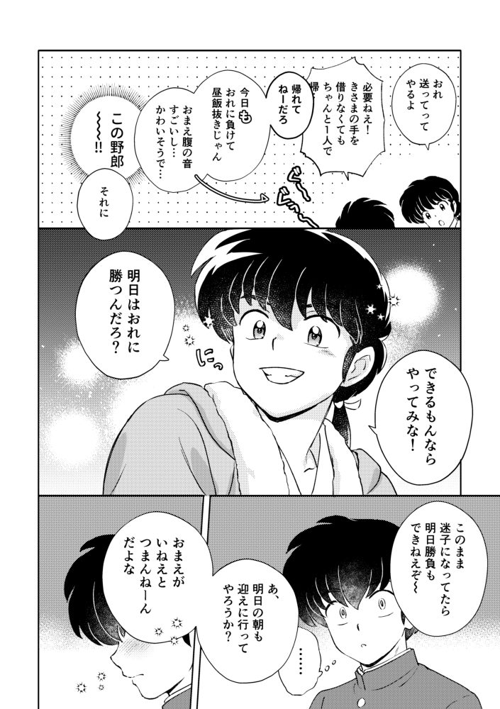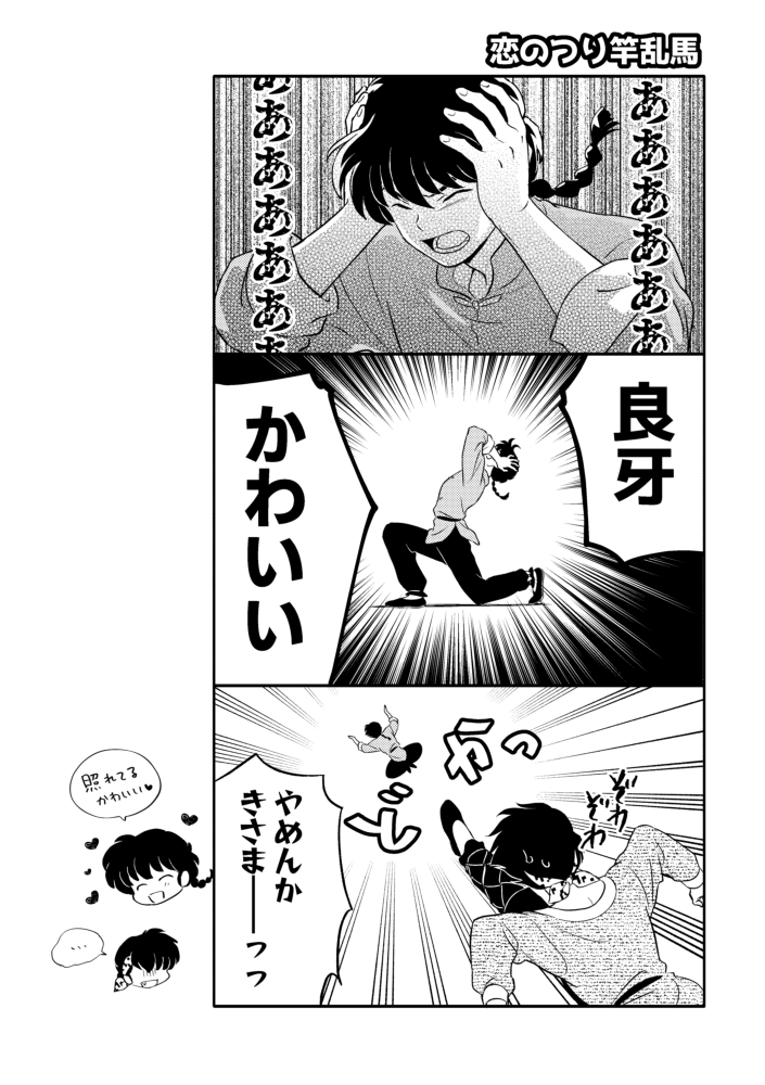 付き合うようになったら良牙があかねやシロクロに向けるような柔らかい表情を乱馬にも見せるようになって、そんな顔に慣れてなくてその度めちゃくちゃドキドキする乱馬がいたらいいな!という夢を見ています!